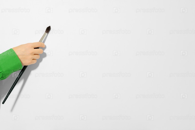 Женская рука касается белого холста кистью, крупным планом. Женская рука с кистью белого холста, крупный план