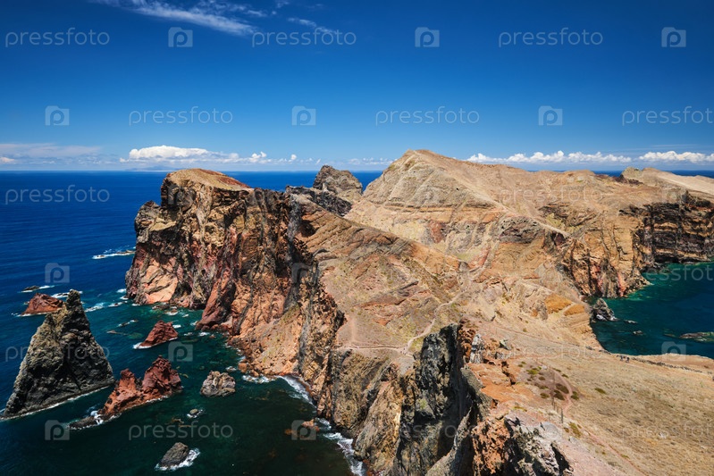 Живописный суровый ландшафт острова Мадейра - мыс Понта-ду-Сан-Лоренсу, смотровая площадка Мирадуру-ду-Абисму. Мадейра, Португалия