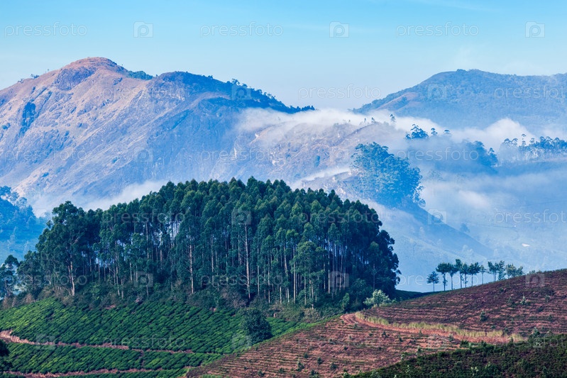 Плантации зеленого чая в Муннаре, Керала, Индия