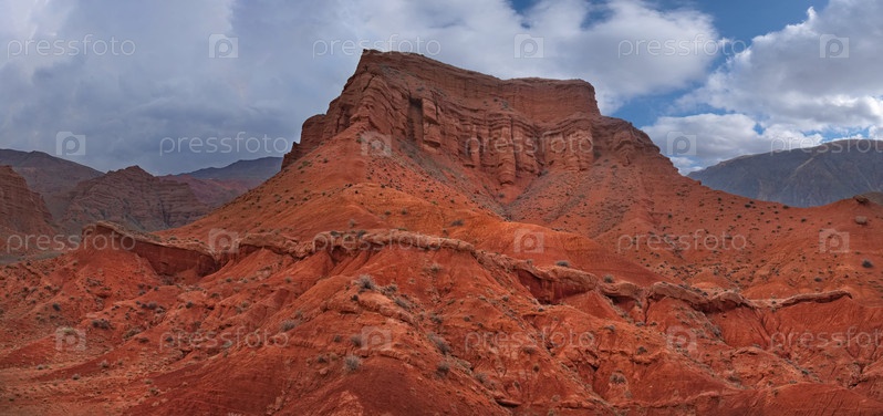 Северный Кыргызстан. Живописные извилистые тропы каньонов Кок-Мойнок с красно-коричневыми скалами вдоль реки Чу