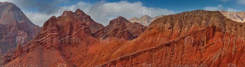 Северный Кыргызстан. Живописные извилистые тропы каньонов Кок-Мойнок с красно-коричневыми скалами вдоль реки Чу