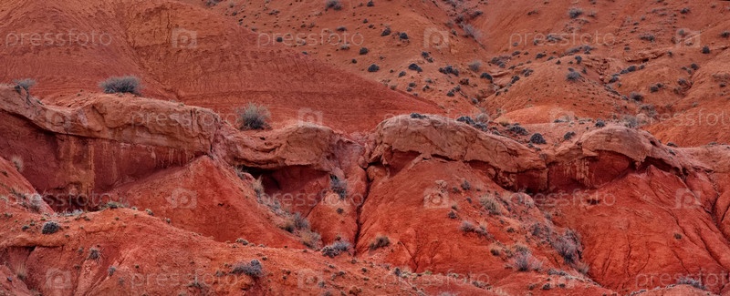 Северный Кыргызстан. Живописные извилистые тропы каньонов Кок-Мойнок с красно-коричневыми скалами вдоль реки Чу