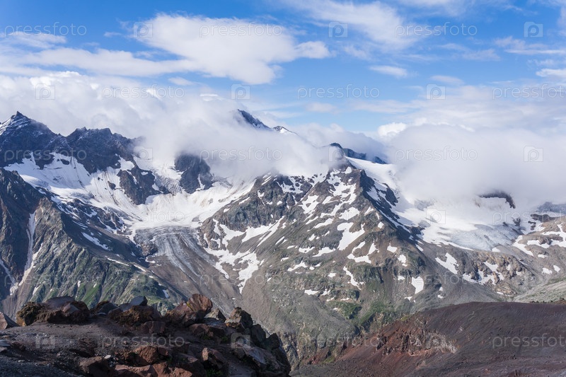 Высокогорный ландшафт с высокими вершинами и ледниками