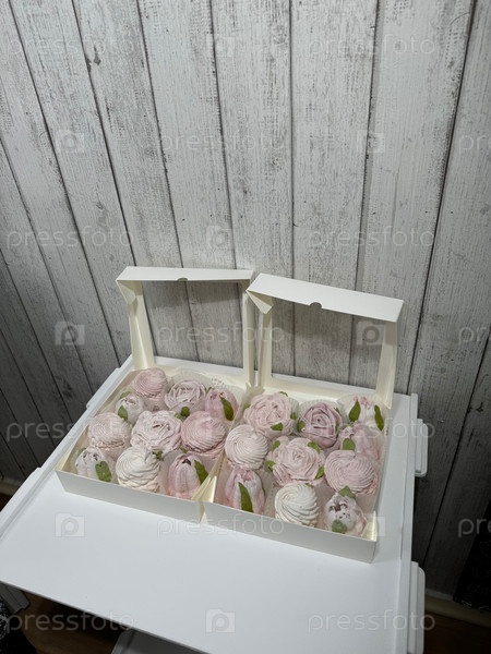 Домашний зефир в открытых коробках. Цветы из зефира и классический зефир