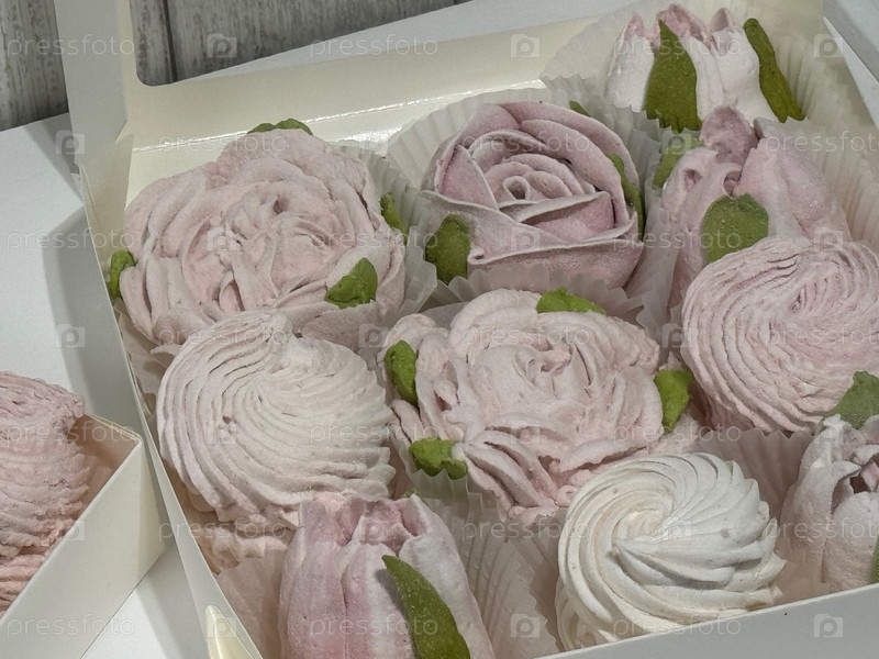 Домашний зефир в открытых коробках. Цветы из зефира и классический зефир