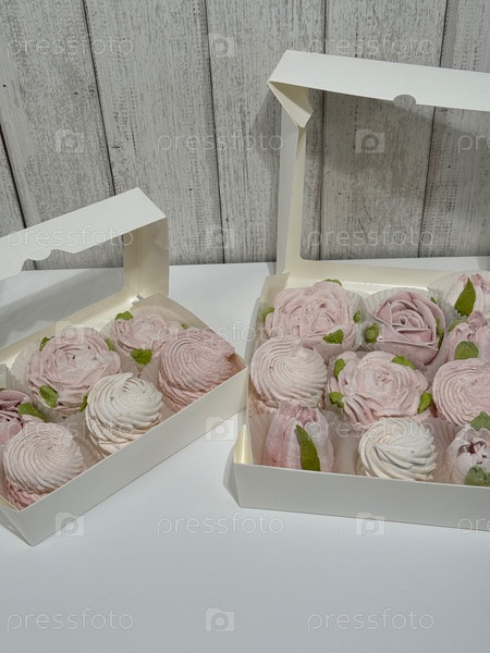 Домашний зефир в открытых коробках. Цветы из зефира и классический зефир