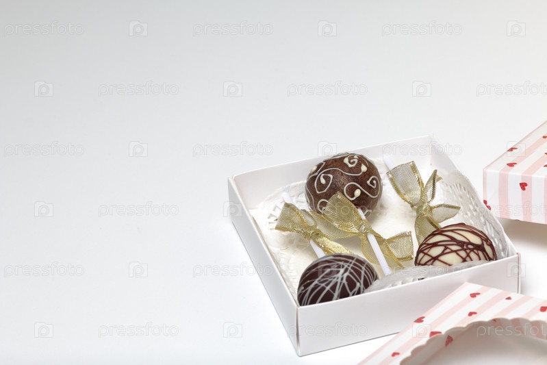 Кейк-попсы, украшенные бантом из тесьмы, упакованы в подарочную коробку
