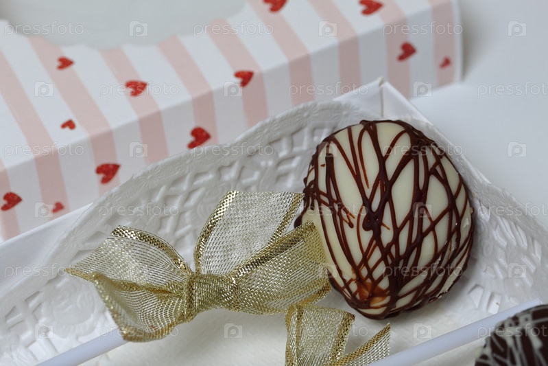 Кейк-попсы, украшенные бантом из тесьмы, упакованы в подарочную коробку