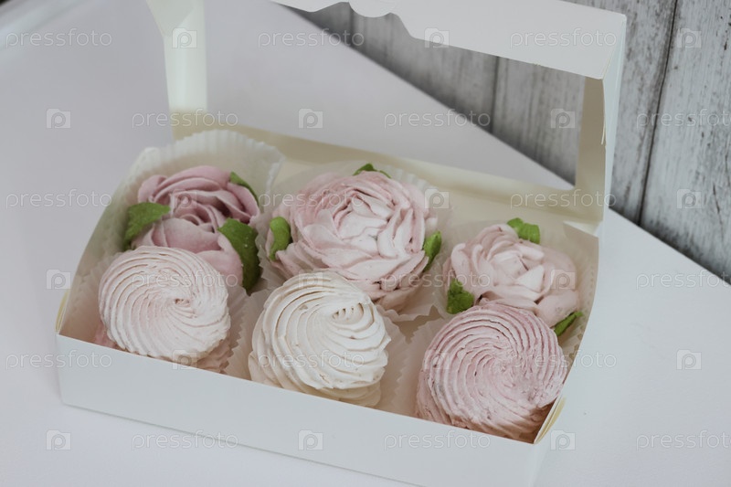 Домашний зефир в открытой коробке. Цветы из зефира
