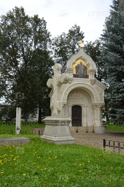 Восстановленная мраморная Усыпальница (склеп) Дмитрия Михайловича Пожарского на месте некрополя князей Пожарских и Хованских в Спасо-Евфимиевом мужском монастыре в городе Суздаль Владимирской области, входящем в Золотое кольцо России
