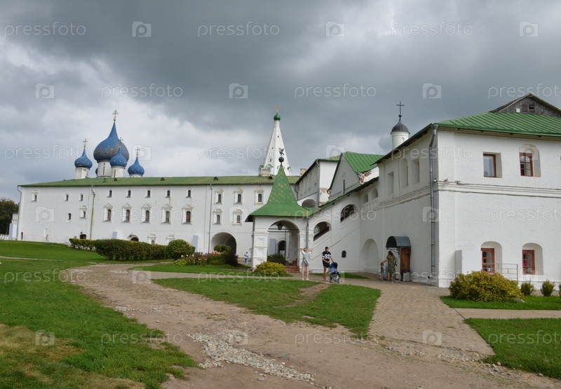 Вид на Суздальский кремль – древнейшую часть города Суздаль Владимирской области, входящего в Золотое кольцо России: Архиерейские палаты, Рождественский собор, Соборная колокольня, Благовещенская церковь