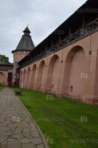 Крепостные стены и башни Спасо-Евфимиева мужского монастыря в городе Суздаль Владимирской области, входящем в Золотое кольцо России
