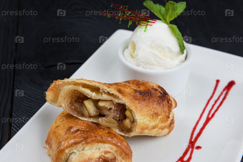 Яблочный штрудель с ванильным мороженым