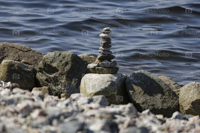 Пирамидка из камней на берегу моря