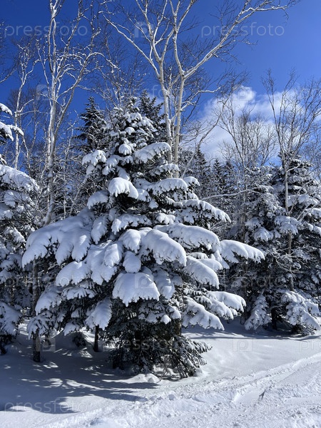 зимний лес голубое небо