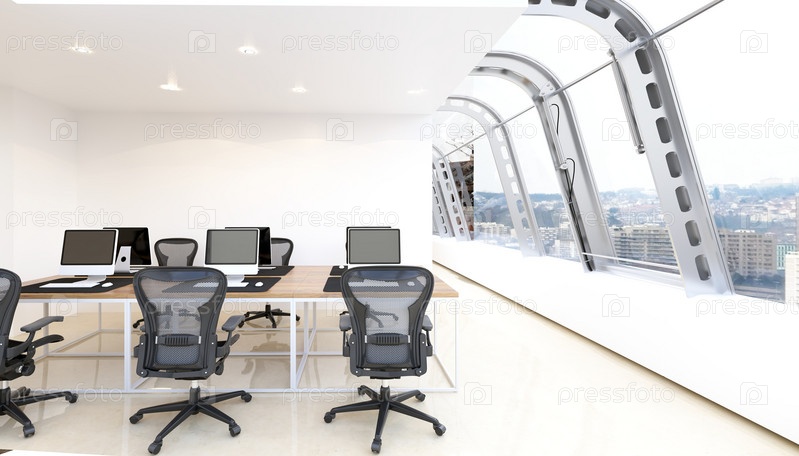 Современное офисное пространство с элегантным дизайном и технологиями. 3D-рендеринг