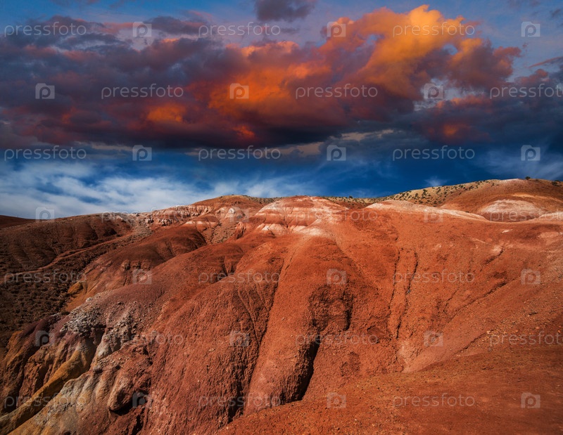 Пейзажи Марсовой долины в горах Алтая с красивым небом