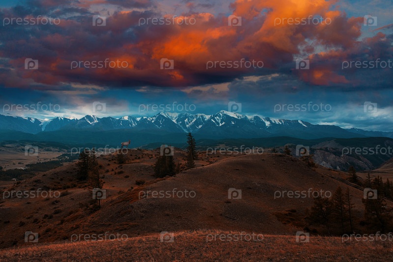 Марал на фоне гор