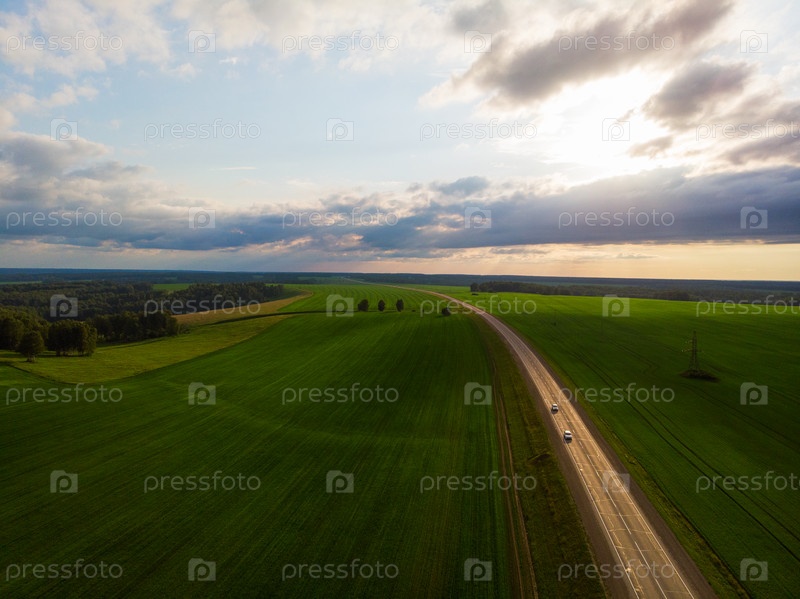 Вид сверху на дорогу летним вечером. Вид с дрона