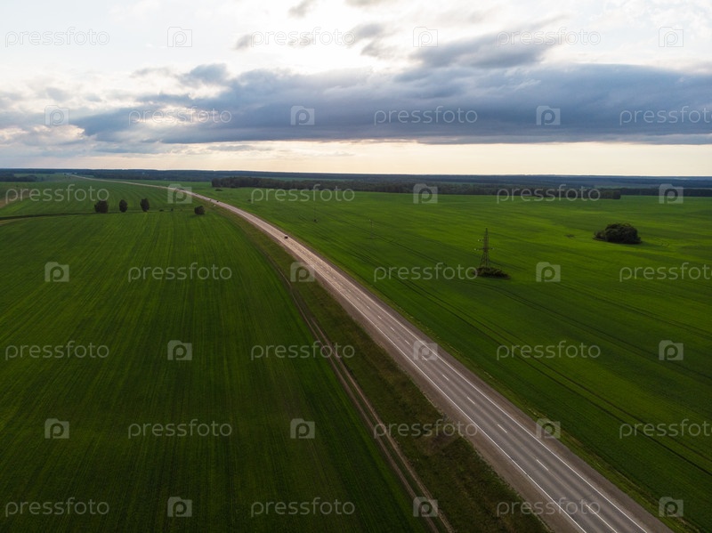 Вид сверху на дорогу летним вечером. Вид с дрона