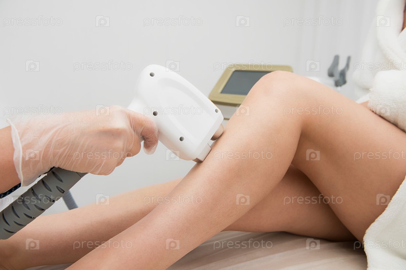 Лазерная эпиляция ног, косметологическая процедура удаления волос. Концепция здоровья и красоты