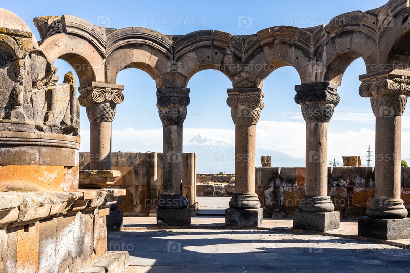 Колоннада в соборе Звартноц и гора Арарат