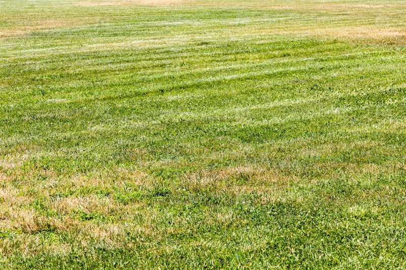 Подстриженный зеленый газон с выгоревшей на солнце травой