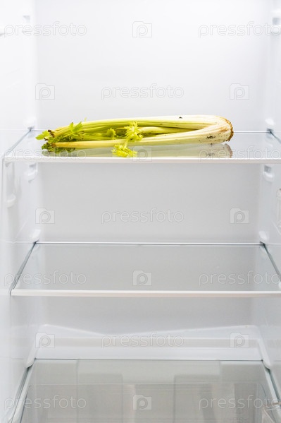 Кухонный холодильник с засохшим сельдереем на полке