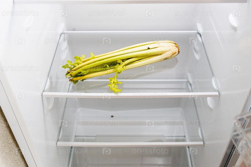 Вид сверху на холодильник с засохшим сельдереем