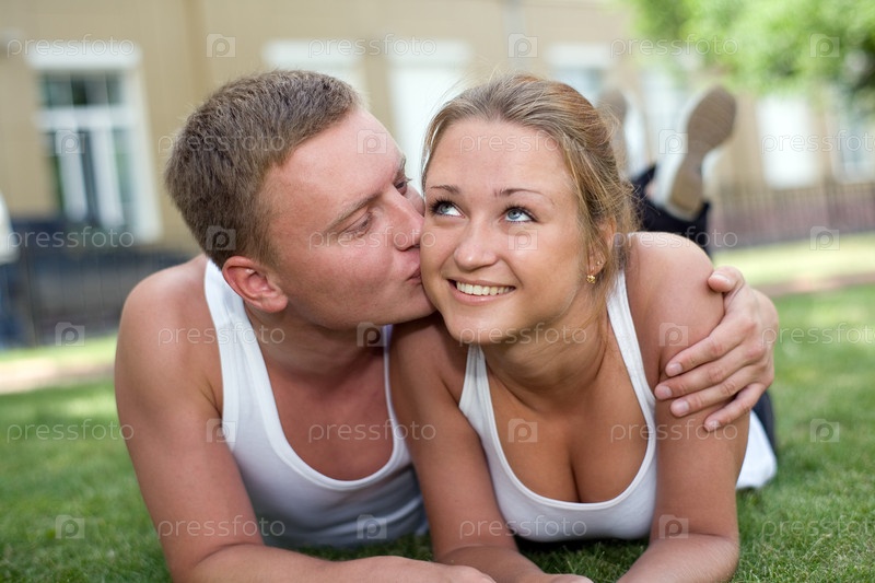 Молодая пара на траве