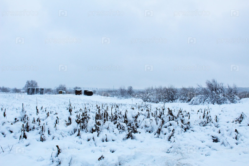 Поле под снегом. зимние сельскохозяйственные работы. Снег согревает озимые посевы растений