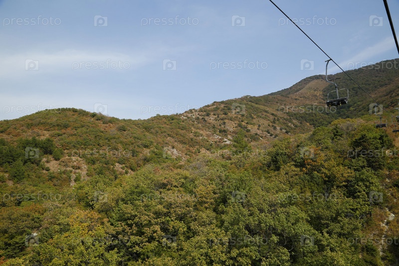 Канатная дорога "Сафари - парк" , лес, горы, синее небо. Город Геленджик