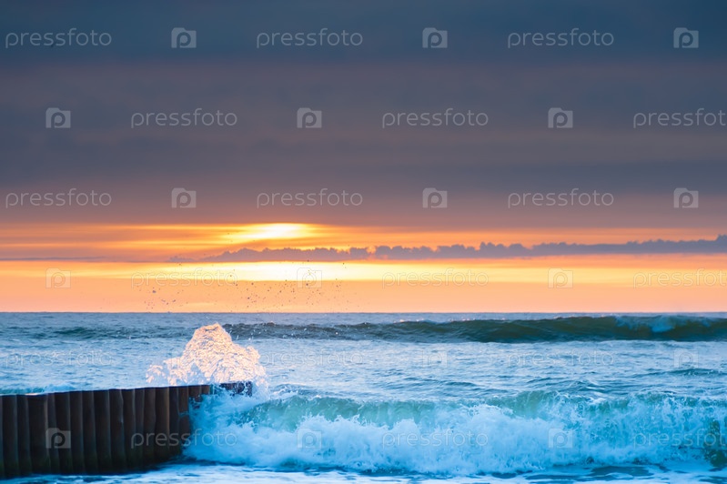 Закат и брызги морских волн