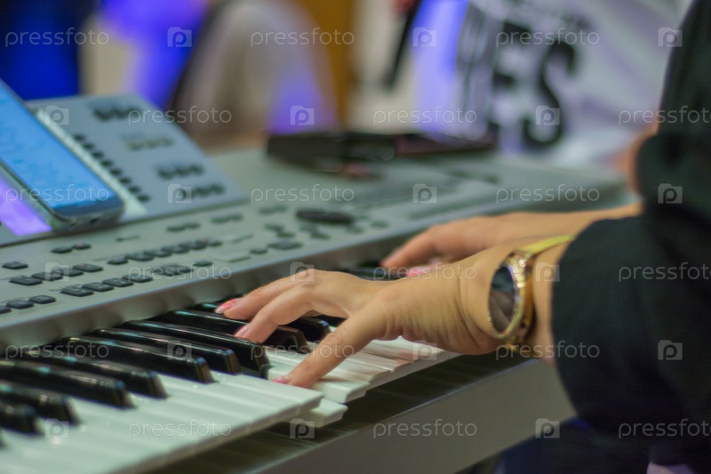 Руки нажимают на клавиши синтезатора