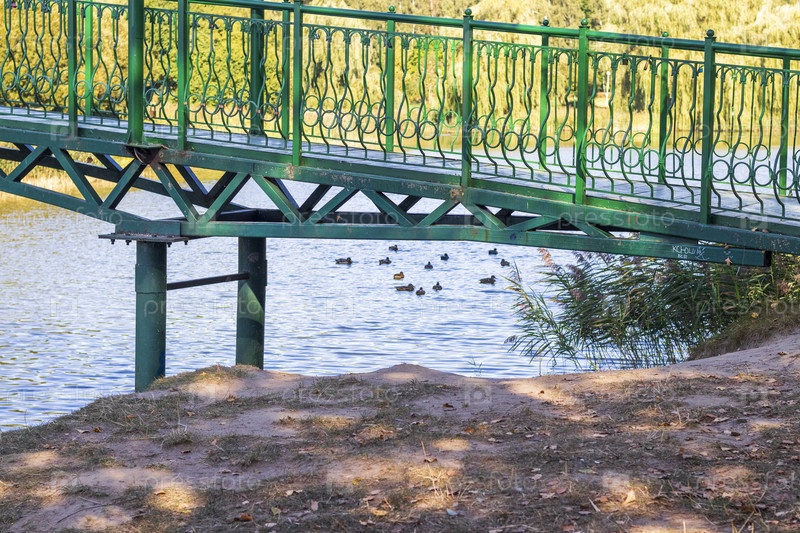 Снимок моста через пруд. На открытом воздухе