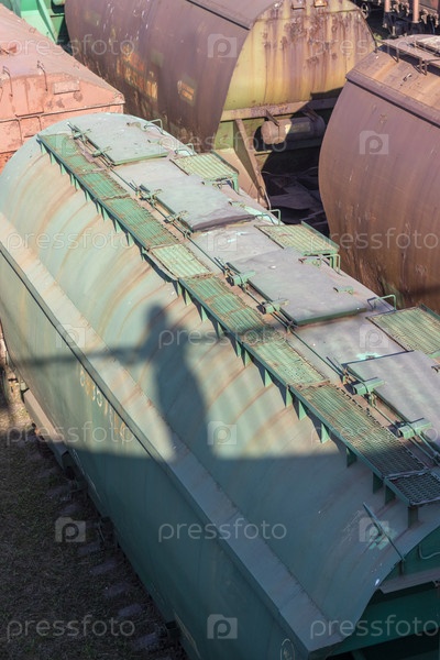 Концептуальный снимок женщины, отбрасывающей тень с моста на вагонетку. Городской пейзаж