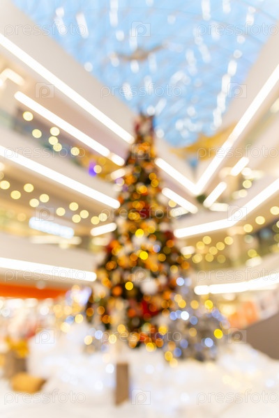 Размытое расфокусированное изображение красиво украшенной рождественской елки