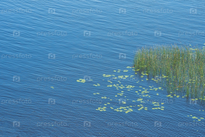 Естественный водный ландшафт, мелководный залив с тростниковыми зарослями