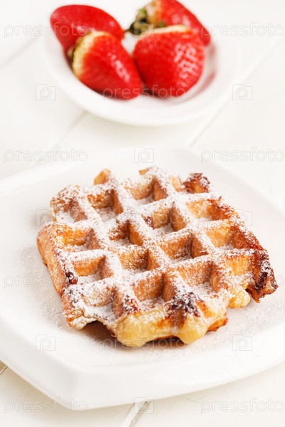 Бельгийские вафли с свежей клубникой