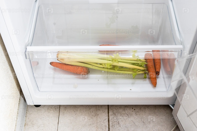 Засохшие овощи в нижнем ящике холодильника