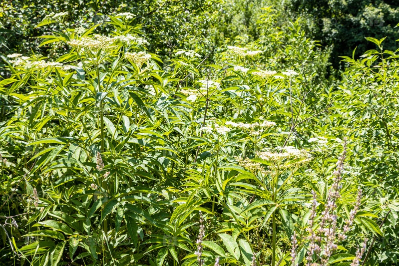 Высокая зеленая трава и даньюорт на старом кладбище