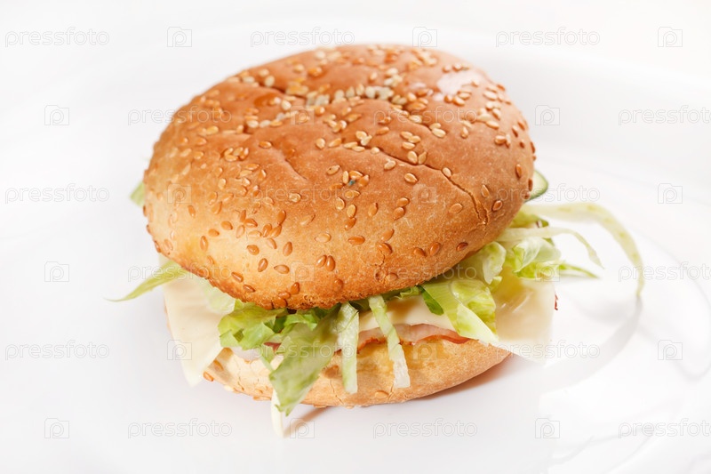 Бургер на белой тарелке