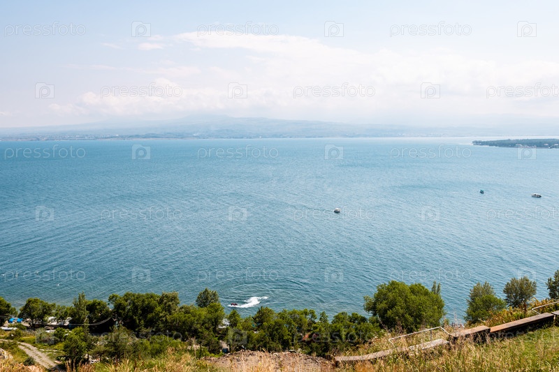 Вид сверху на озеро Севан из Севанаванка, Армения