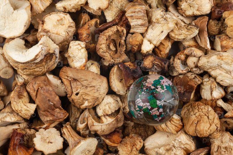 Стеклянный шар, лежащий на сушеном грибе