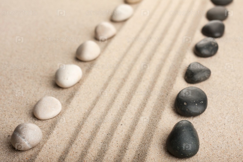 Полоса белых и черных камней, лежащих на песке