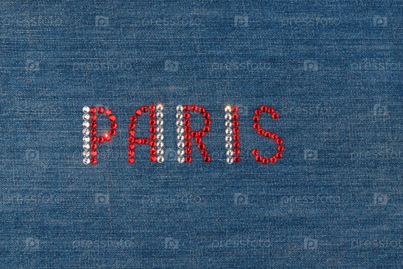 Надпись 'Paris', инкрустированная строками на джинсовой ткани