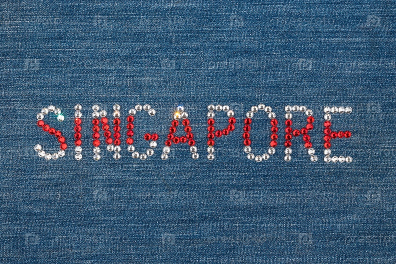 Надпись Сингапур, инкрустированная строками на джинсовой ткани