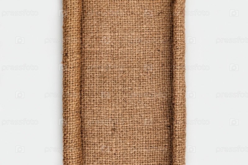Рамка из мешковины с загнутыми краями в виде свитка лежит на белом фоне