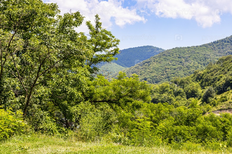 Вид на зеленые заросшие горы возле Гошаванка