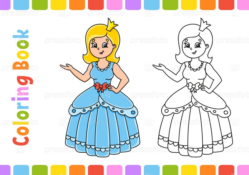 Раскраска для детей. Сказочная тема. Персонаж мультфильма. Векторная иллюстрация. Страница фэнтези для детей. Черный контурный силуэт. Изолирован на белом фоне